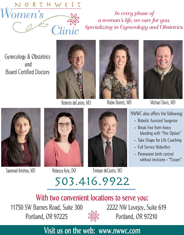 NWWC has two office locations and accepts many health plans. Their main office is one mile west of my St. Vincent office on Barnes Road, just west of Cedar Hills Boulevard. They also have an office near Good Samaritan Hospital on Lovejoy.  Their NW Portland office might be very convenient for those of you living in Vancouver or Portland. The Physicians at NWWC are Enrique deCastro, Roberto deCastro, Robin Barrett, Michael Davis, Saramati Krishna, and Rebecca Kyle. Their website is www.nwwc.com and their phone # is 503 416-9922.